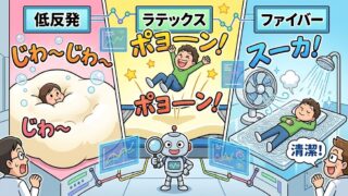 | エマスリープ | 3層構造で体圧分散と通気性を両立 | 3層ウレタンフォーム | エアグリッド、HRXフォームなど | 約98,000円~ | 通気性高く、抗菌カバー使用 | 中程度 | 100日間トライアル、10年保証 |