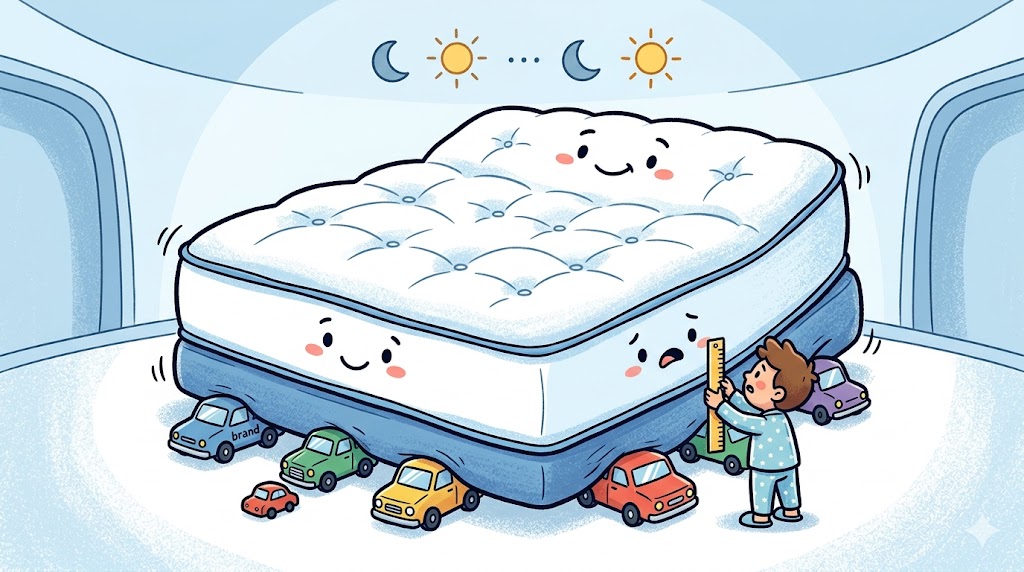 海外ブランドのマットレスを選ぶ際は、そのブランドが提供している純正のフレームやシーツの寸法も一緒に確認しておくと、後から買い直す手間が省けて安心だと思いますよ。