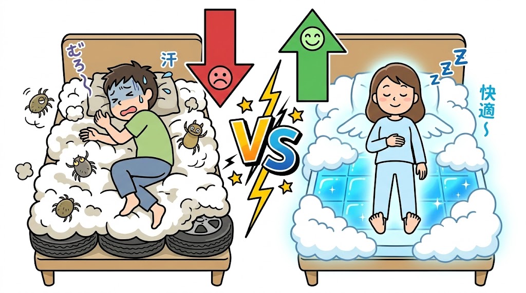 実はその悩み、マットレスの「素材」を知るだけで解決するかもしれません。