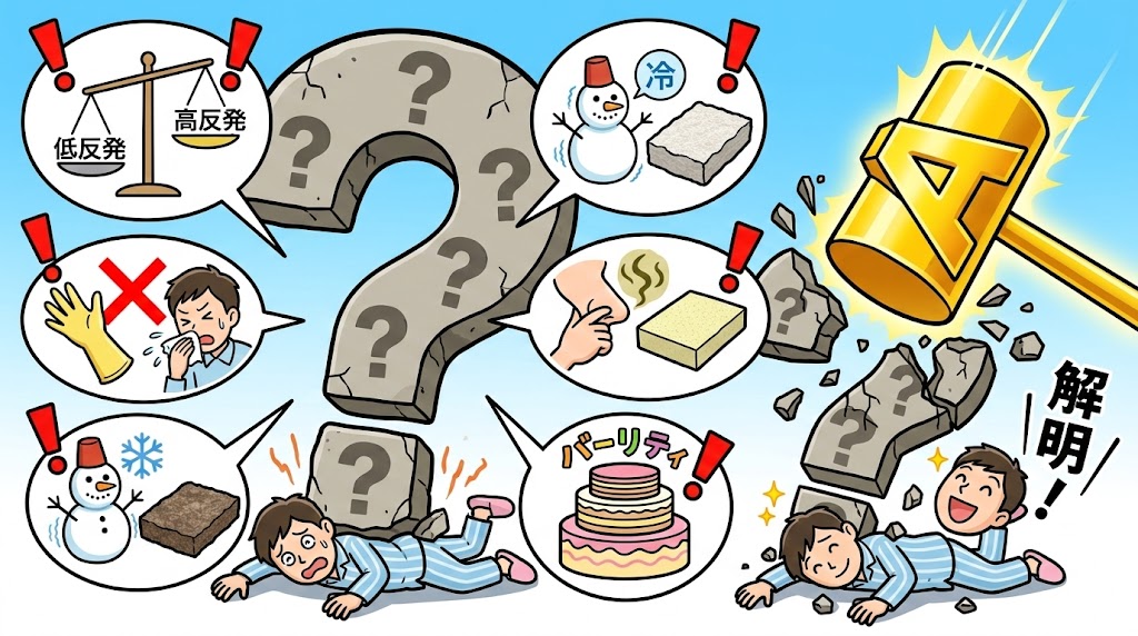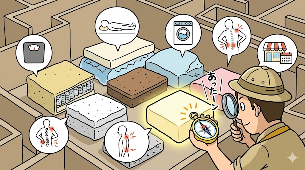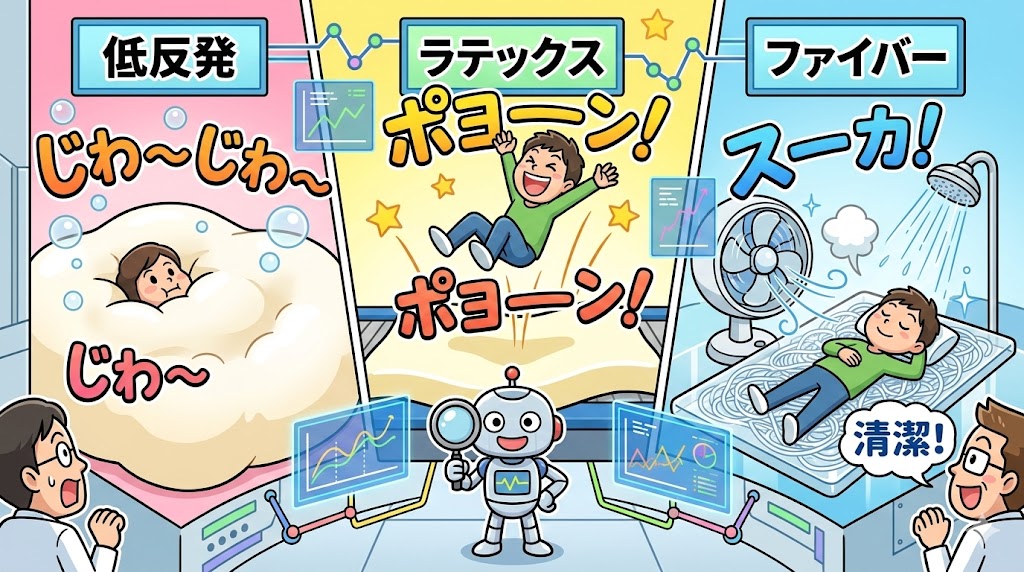 低反発、ラテックス、ファイバーといった各素材の特性を理解し、自分の体格や生活環境に合わせた「最適解」を見つけることが大切です。