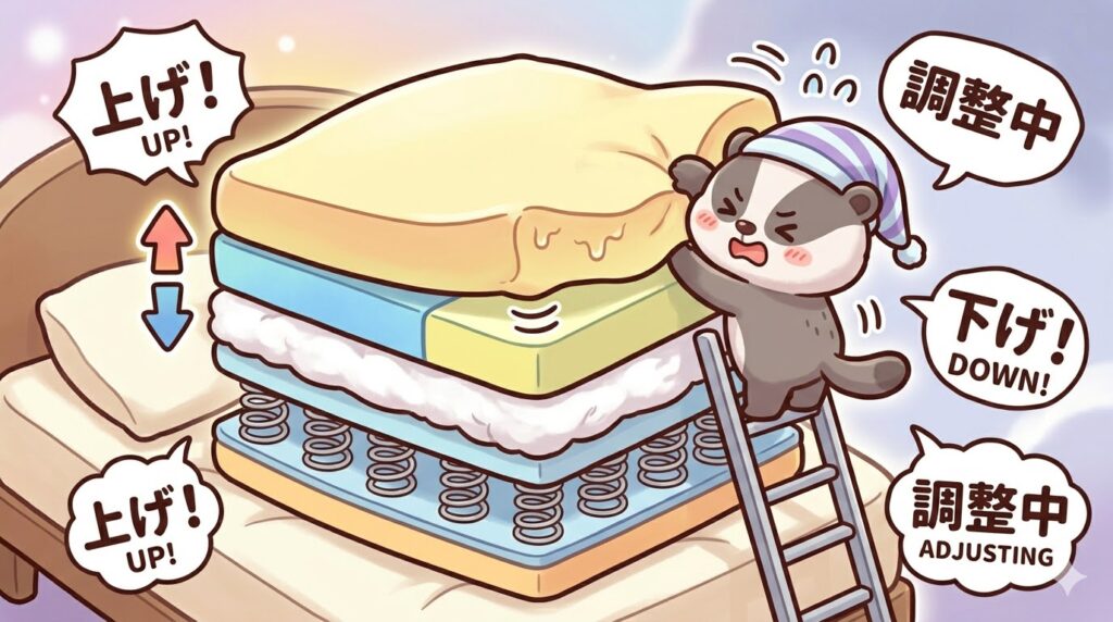 「自分に合う高さ」というのは、実は一度決めたらずっとそのままというわけではなく、マットレスの状態によっても変化するものです。