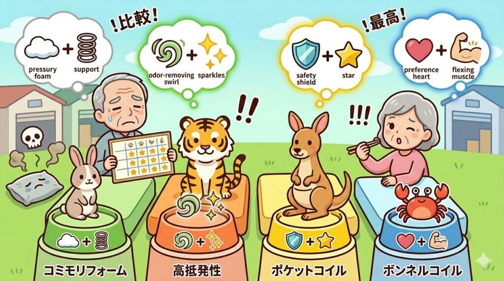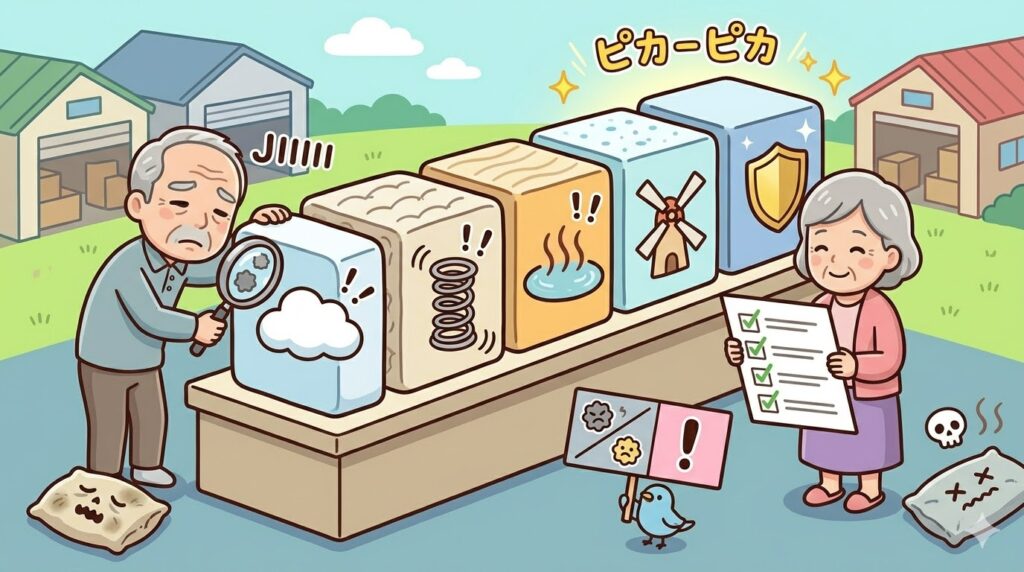 さて、いざ新しいマットレスを選ぼうと思っても、お店やネットには膨大な種類の製品があふれていて、正直どれが良いのか迷ってしまいますよね。