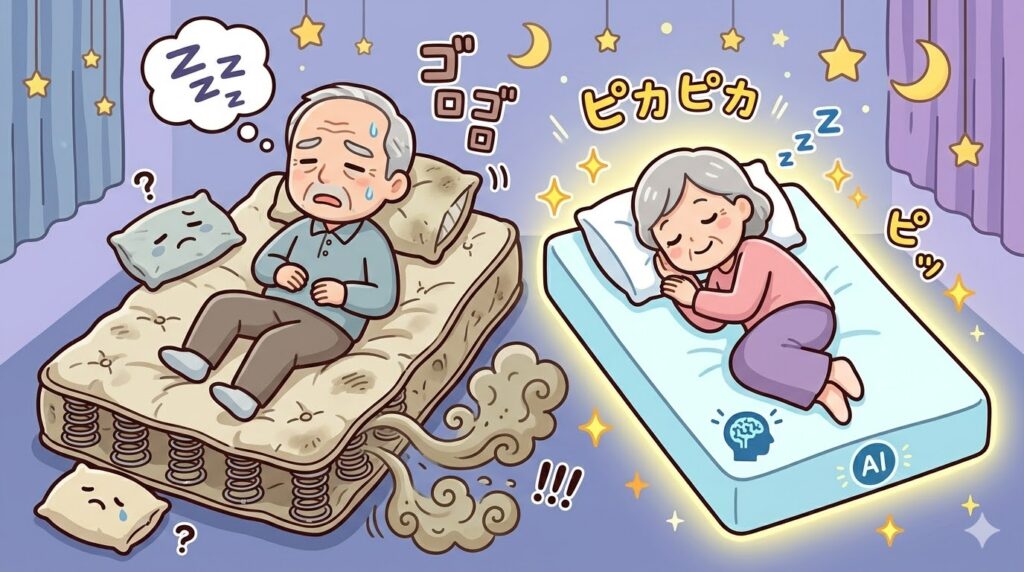 シニア世代になると筋肉量が少しずつ減ってくるため、この「寝返りのしやすさ」が眠りの質を大きく左右する重要な鍵になります。